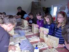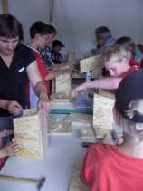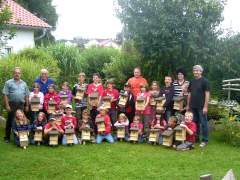 Die Vereinsmitglieder hatten für jedes Kind einen Vogelnistkasten vorbereitet welche die Kinder selber zusammen bauten. Jedes Teil des Nistkastens wurde mit Holzleim verklebt und dann zusammengenagelt.Bei Problemen mit dem Nageln oder beim Zusammenbau unterstützten die Vereinsmitglieder die Ferienkinder.Die Buben und Mädchen waren mit Begeisterung bei der Sache. Nach einer kurzen Stärkungspause kam der letzte Arbeitsgang dran. Das Dach der Nistkästen wurde mit Dachpappe abgedeckt und fertig waren die Vogelnistkästen. Alle Kinder hatten die Nistkästen super zusammen gebaut. Alle waren stolz und keiner hat sich dabei auf die Finger geklopft. Anschließend wurden alle Nistkästen begutachtet und dabei ein Eis, gespendet von der Familie Weinfurtner, verzehrt. Damit die Kinder und die Eltern die Vogelnistkästen in ihren Gärten zu Hause richtig aufhängen, bekam jedes Kind einen Zettel mit Anleitung mit.